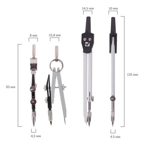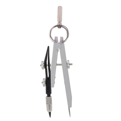 Циркуль длиной 135 мм. Изготовлен из металла, дополнительный цвет элементов - черный.