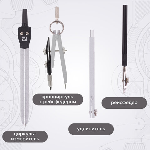 Металлическая готовальня BRAUBERG "Architect" предназначена для выполнения чертежных работ. Для учеников старших классов и студентов.