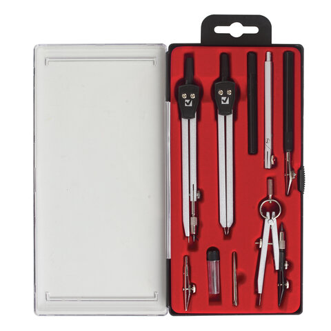 Готовальня STAFF, 9 предметов: циркуль 120 мм, чертежные принадлежности, механический карандаш, пластиковый пенал, 210863