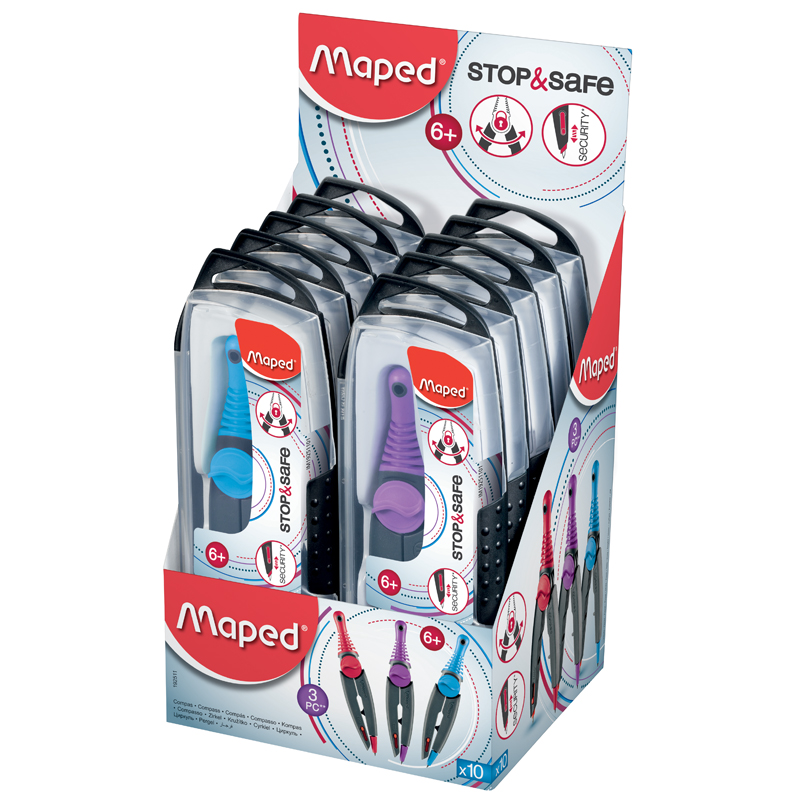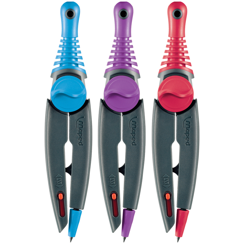 Циркуль с усовершенствованной системой безопасности. Игла убирается автоматически. Система блокировки штанг. Эргономичный держатель из двойного материала. Ударопрочный футляр