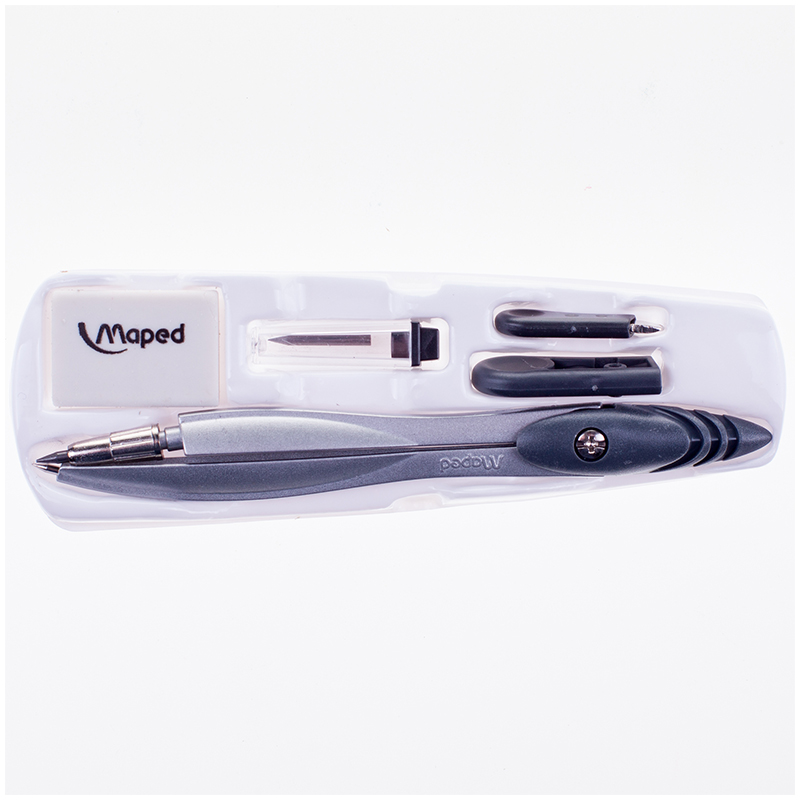 Готовальня STUDY с циркулем из цинкового сплава в пластиковом футляре. В комплект входят упаковка грифелей, точилка для грифелей, отвертка и ластик. Цвет металлик с вставками ассорти: серой, зеленой или розовой.