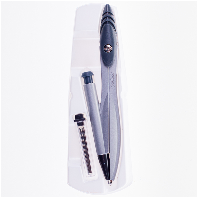 Циркуль STUDY с автом. карандашом. Металлические штанги, длина 12 см. Пластиковый футляр, упаковка грифелей 0,5 мм в комплекте. Цвет серебристый со вставками ассорти: серый, розов., салатов.
