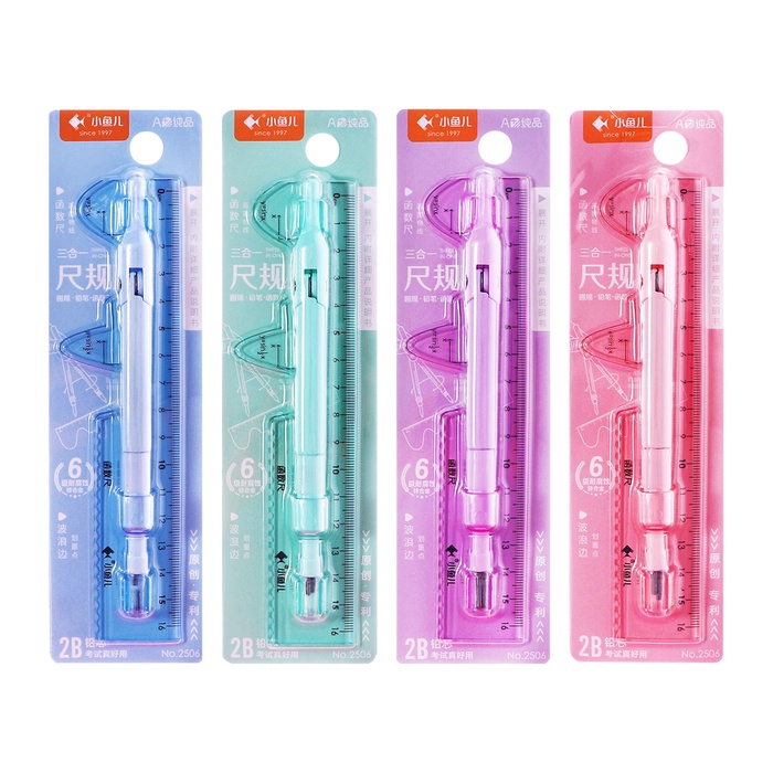 Циркуль металлический 120 мм, с колпачком, в пластиковой линейке 15 см, с запасными грифелями, МИКС