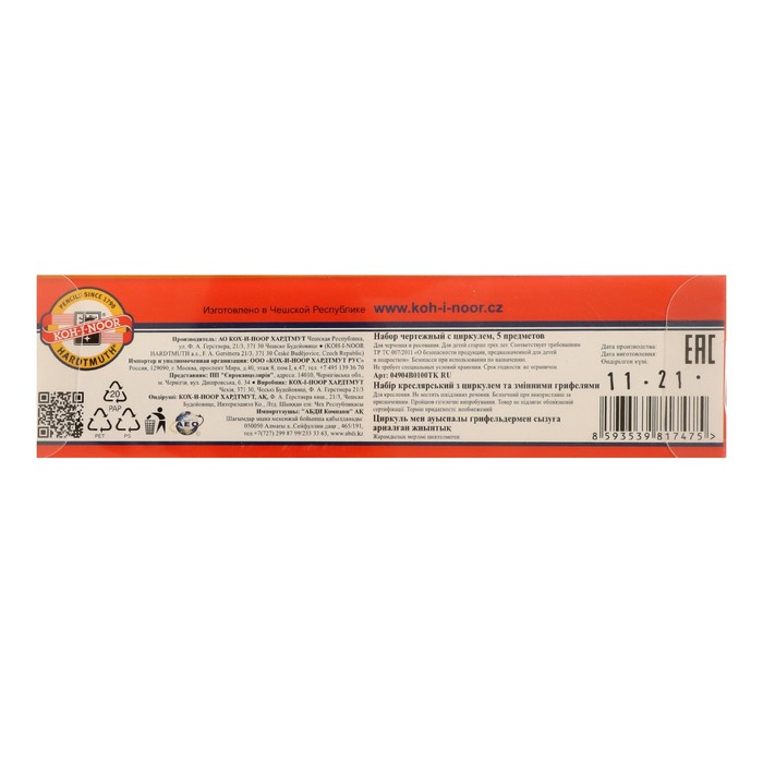 Готовальня ErichKrause "CoolRay", 2 предмета, пенал, микс