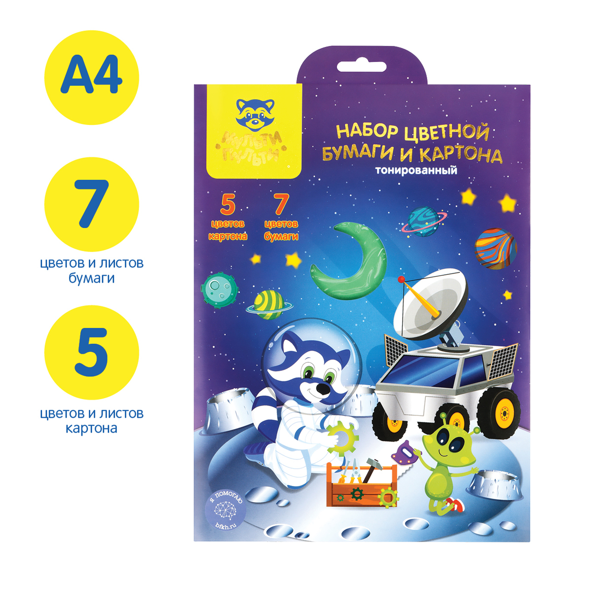 Набор из тонированного картона и бумаги «Мульти-Пульти» предназначен для самых требовательных пользователей. Плотность бумаги: 80 г/кв. м. Плотность картона: 230 г/кв. м. Картон и бумага прокрашены в массе, что позволяет видеть тот же цвет на срезе. Отличное решение для творческих и оформительских работ. Для детей старше 3-х лет.<br/>• Вид товара: набор бумаги и картона;<br/>• Формат: А4;<br/>• Количество листов бумаги: 7;<br/>• Количество листов картона: 5;<br/>• Плотность бумаги: 80 г/кв. м;<br/>• Плотность картона: 230 г/кв. м.