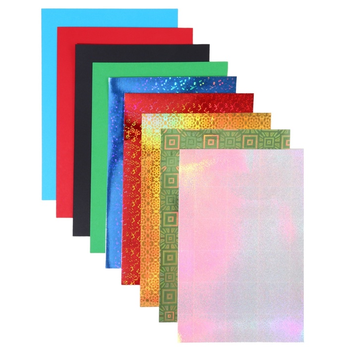 Набор: цветной картон 10 листов 220 г/м² односторонний и цветная бумага, 16 листов двусторонняя А4