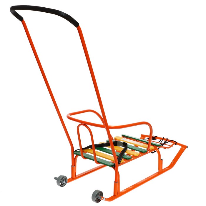 Санки для двойняшек с толкателем, цвет зеленый