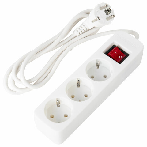 Удлинитель У10-003 3 розетки, с заземлением, с выключателем, 10А, 1,8 м, белый, 7032
