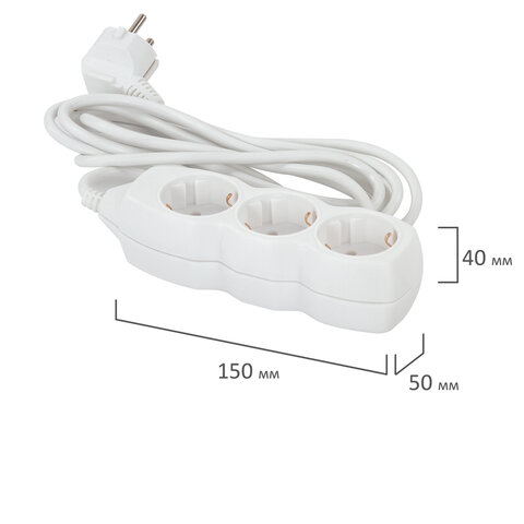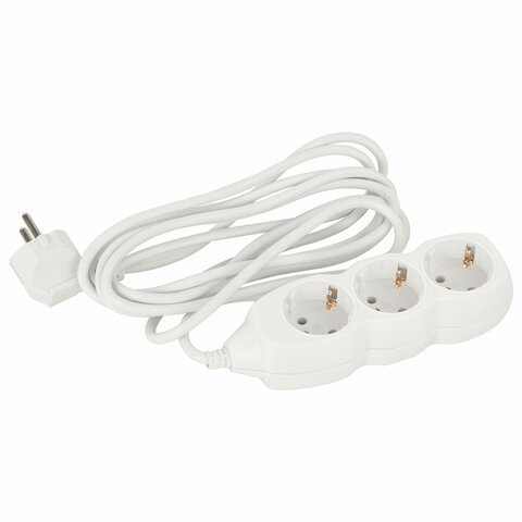 Сетевой удлинитель в пластиковом корпусе оснащен 3 евророзетками без заземления. Максимальный ток нагрузки - 6 А. В сочетании эти параметры позволяют безопасно подключать к удлинителю до 3 электроприборов. Длина кабеля – 3 метра, что позволит использовать удлинитель как внутри помещения, так и снаружи.