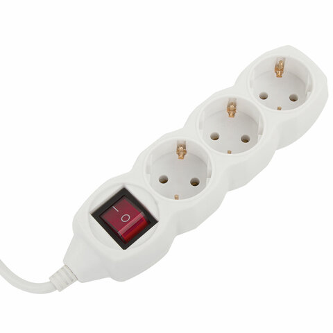 Удлинитель У10-003 3 розетки, с заземлением, с выключателем, 10А, 1,8 м, белый, 7032