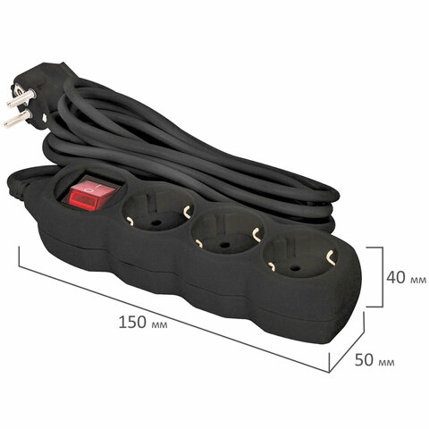 Сетевой удлинитель оснащен 3 евророзетками. Максимальный ток нагрузки подключенных устройств может достигать 10 А. В сочетании эти параметры позволяют безопасно подключать к удлинителю до 3 электроприборов. Длина кабеля – 3 метра, что позволит использовать удлинитель как внутри помещения, так и снаружи.