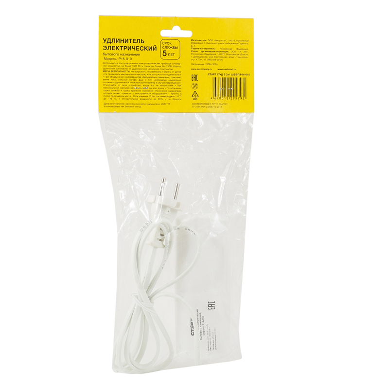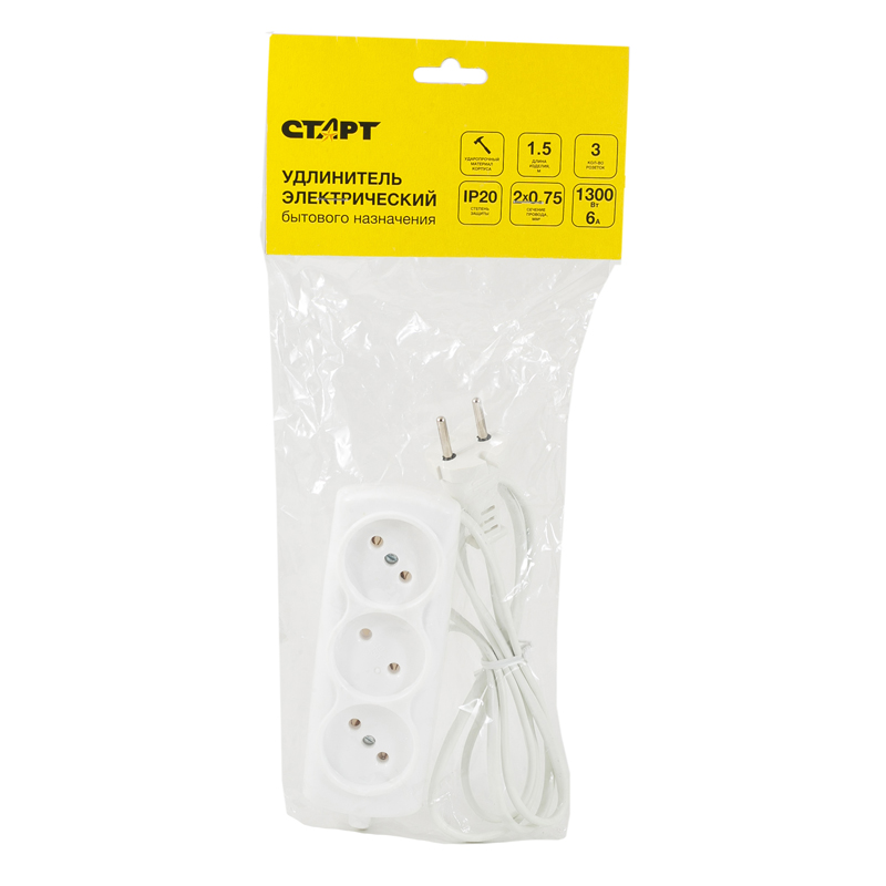 Корпус из высокопрочного пластика, отличающегося ударо- и огнестойкостью. Электроконтакты сделаны из латуни. <br/>Модель СТАРТ С/УД 3x1 ШВВП обладает большой суммарной мощностью – 2200 Вт, и тока нагрузки (6 А). Это позволяет одновременно подключать к устройству три электроприбора с немалым энергопотреблением. К примеру, электрочайник, блендер и тостер. <br/>Провод ШВВП предполагает двойную изоляцию.