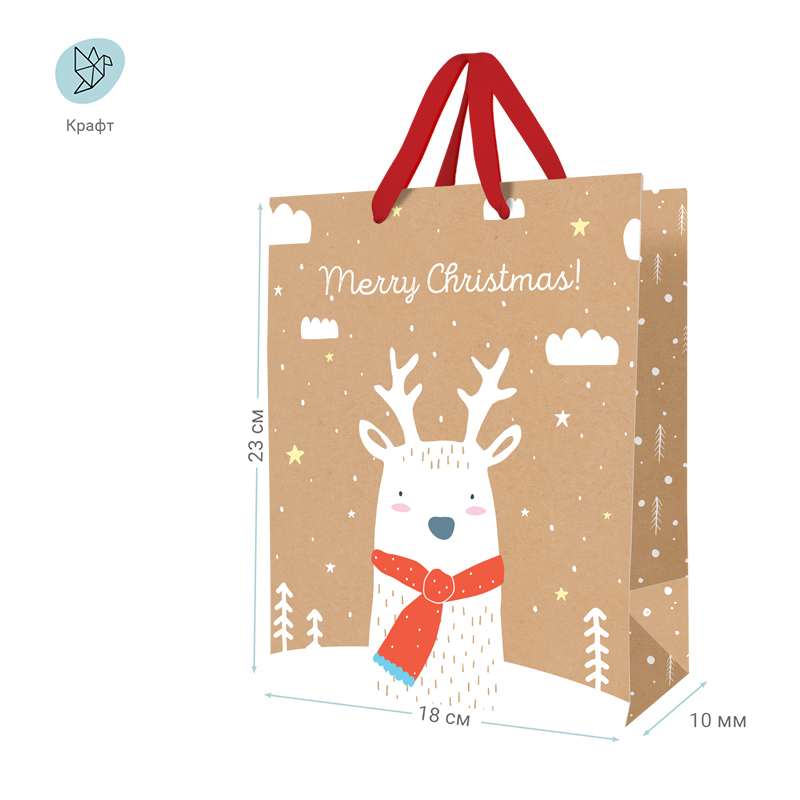Яркий подарочный пакет MESHU Christamas Deer выделит ваш презент из массы других. Оригинальный новогодний дизайн сделает подарок эффектным и запоминающимся. Размер пакета – 18*23*10 см, материал – крафт-бумага. <br/>Получать подарки всегда приятно, а красиво оформленные подарки приятнее вдвойне! Пакеты Meshu – беспроигрышный способ красиво преподнести ваш сюрприз. Эксклюзивный дизайн, разнообразие отделок и качество – отличительные черты продукции Meshu, воплотившиеся в подарочных пакетах. Яркая ленточка на пакете отличается высокой прочностью и насыщенностью цвета. Дарите подарки с любовью, со вкусом, с Meshu!<br/>• Размер: 18*23*10 см;<br/>• Ориентация: вертикальная;<br/>• Вид ручек: лента.