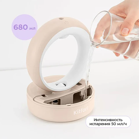 Резервуар объёмом 680 мл обеспечивает до 13 часов непрерывной работы, а расход воды — всего 50 мл/ч. При низком уровне воды устройство автоматически отключается, защищая внутренние компоненты. Мощность составляет 10 Вт, уровень шума — менее 50 дБ, что делает его комфортным даже ночью.