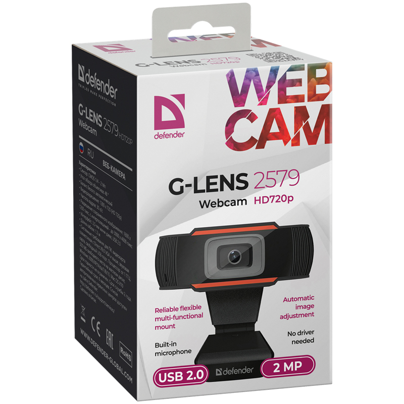 Веб-камера DEFENDER C-2525HD, 2 Мп, микрофон, USB 2.0, регулируемое крепление, черная, 63252
