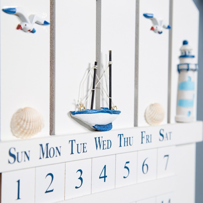 Сувенир вечный календарь, дерево, 11.5х6.5х12 см, цв. белый