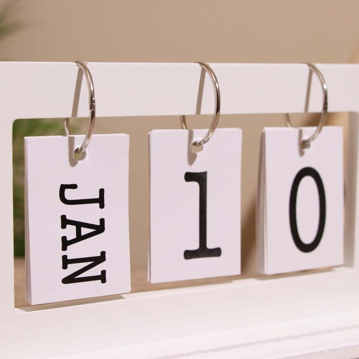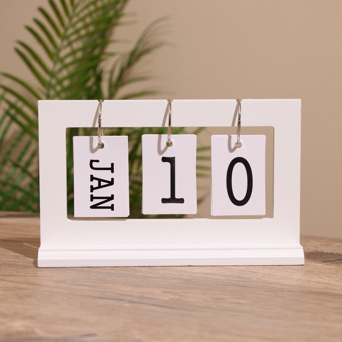 Сувенир вечный календарь, дерево, 11.5х6.5х12 см, цв. белый
