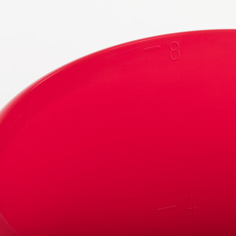 Объем - 8 л. Оснащено перекидной ручкой для удобства переноски. Верхняя кромка ведра загнута наружу, что позволяет захватывать его и переносить без помощи ручки. Ведро круглой формы изготовлено из высокопрочного пластика. Размер – 25х25х25 см. Риски 4 и 8 литров.
