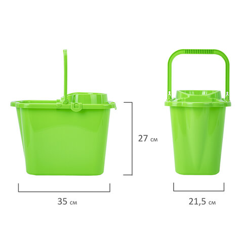 Прямоугольное ведро с отжимом. Используется для мытья полов в комплекте с насадкой "моп". Благодаря специальной выемке слив воды производится аккуратно, без разбрызгивания. Ведро с отжимом подходит для уборки небольших площадей.