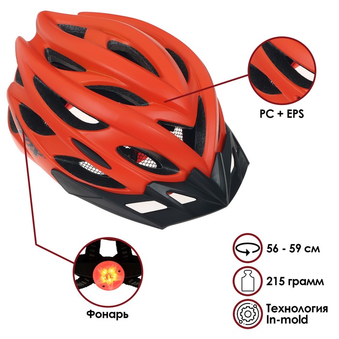 Шлем велосипедиста BATFOX J-792, р. 56-59 см, цвет оранжевый