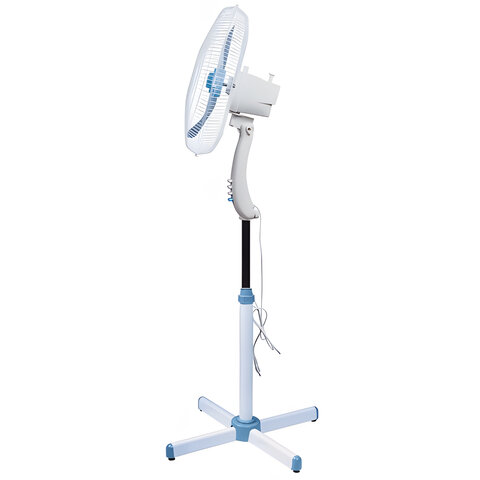 Вентилятор отличается низким уровнем шума, равным всего 30 дБ. Электродвигатель мощностью 45 Вт обеспечивает стабильную работу. Наличие трех скоростей обдува позволит выбрать наиболее комфортный режим для пользователя. Вентилятор оснащен регулировкой воздушного потока в горизонтальной и вертикальной плоскости.