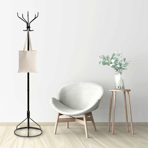 Вешалка-стойка "Дерево", 1,81 м, диск 37,5 см, 15 крючков, металл, черная, ВНП 211 Ч