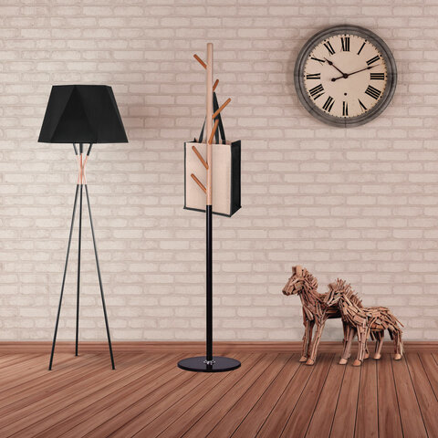 Верхняя часть вешалки-стойки выполнена из натурального бука, 6 крючков расположены "по спирали", что позволяет компактно разместить верхнюю одежду. Максимальная нагрузка на вешалку - 20 кг.