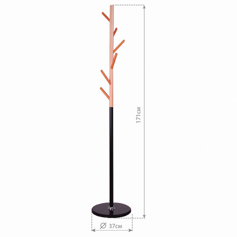 Вешалка-стойка "Дерево", 1,81 м, диск 37,5 см, 15 крючков, металл, черная, ВНП 211 Ч