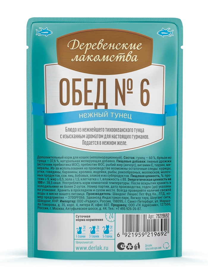 Влажный корм для кошек "Деревенские Лакомства" Тунец с крабом сурими, пауч, 50 г