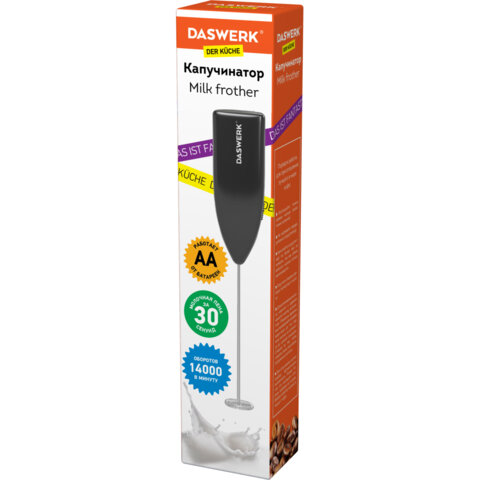 Капучинатор/вспениватель молока DASWERK – это незаменимое устройство для тех, кто любит наслаждаться вкусным кофе в домашних условиях. Создайте пышную пену для любимого напитка за считаные секунды!