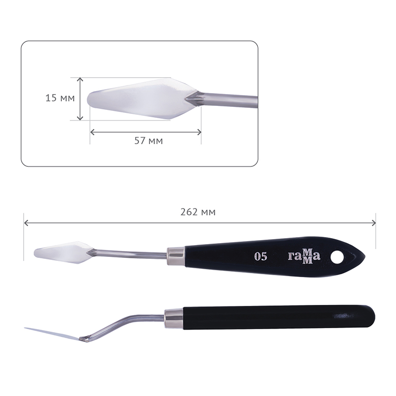 размер рабочей поверхности мастихина-35мм*13мм
