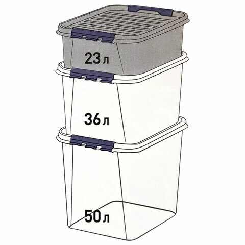 Ящик-контейнер 50 л с КРЫШКОЙ НА ЗАЩЕЛКАХ "ПРОФИ", 40х50х39 см, штабелируемый, ПРОЧНЫЙ, прозрачный, 437960000