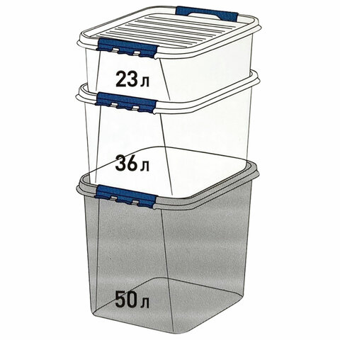 Ящик-контейнер 23 л с КРЫШКОЙ НА ЗАЩЕЛКАХ "ПРОФИ", 18х50х39 см, штабелируемый, ПРОЧНЫЙ, прозрачный, 437940000