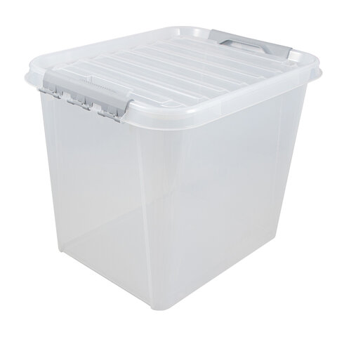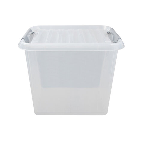 Ящик-контейнер 36 л с КРЫШКОЙ НА ЗАЩЕЛКАХ "ПРОФИ", 29х50х39 см штабелируемый, ПРОЧНЫЙ, прозрачный, 437950000