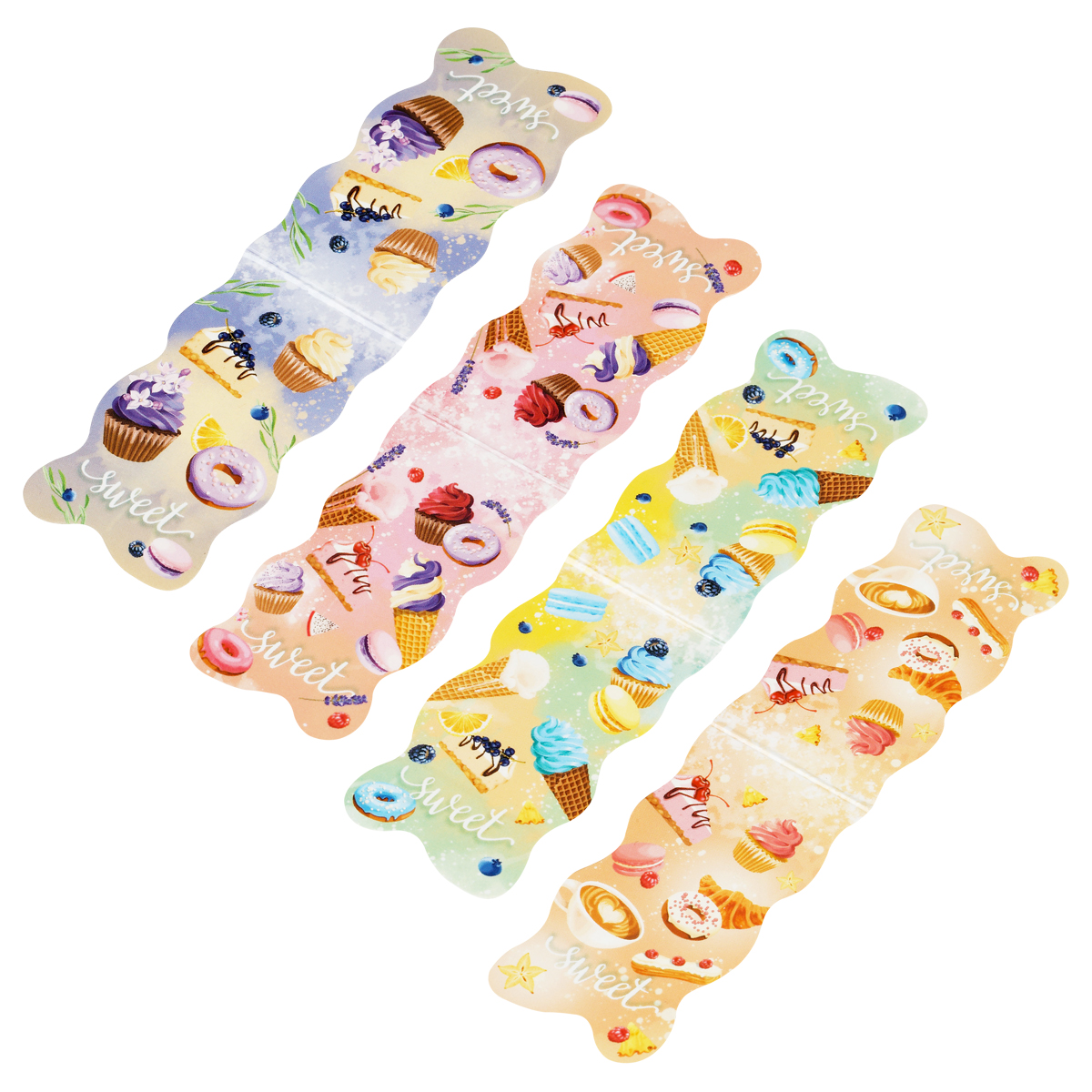 Магнитные закладки ArtSpace "Sweets" помогают вернуться к чтению книги в любой момент. В упаковке находятся восемь аксессуаров со сладостями в четырёх разных дизайнах. Магнитная полоска позволяет надёжно закрепить закладку и без труда найти нужную страницу. Размер — 35*130 мм, что оптимально для размещения в книге или журнале любого формата. Аксессуары сделаны из винила и плотного картона. <br/> • Количество: 8 штук;<br/> • Материал: картон и винил;<br/> • Размер подложки: 35*130 мм.