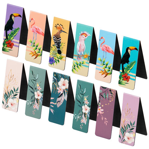 Закладки выполнены из картона и винила, надежно крепятся на листе благодаря магнитной полосе. Позволяют быстро найти нужную страницу. Удобны в применении и даже спустя большое количество времени будут выглядеть аккуратно. Размер закладки - 20х60 мм. В наборе 12 штук.