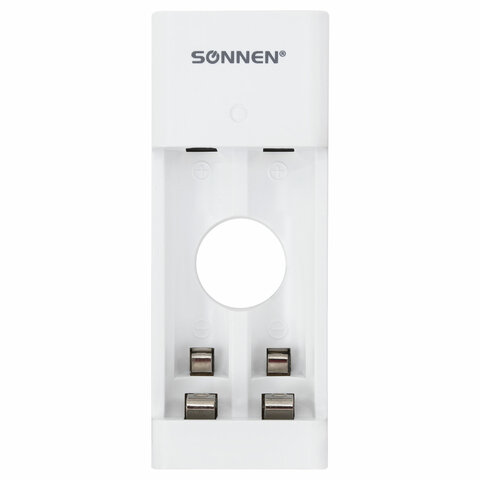 Зарядное устройство SONNEN предназначено для одновременной зарядки 2 Ni-MH аккумуляторов типоразмеров АА или ААА. Зарядка должна производиться парами в соответствии с типоразмерами.