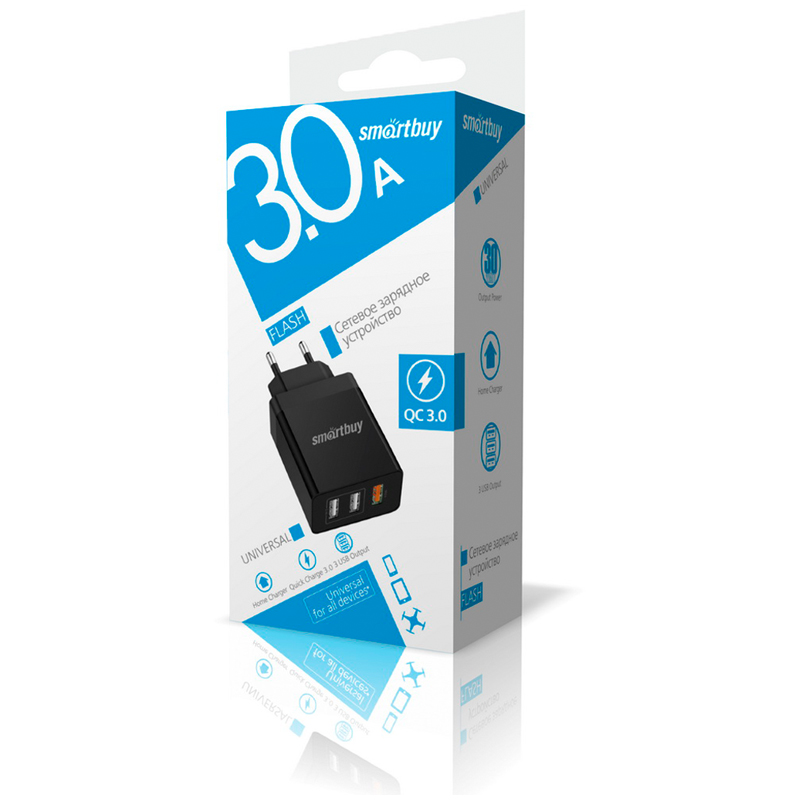 Зарядное сетевое устройство SmartBuy FLASH SBP-3030 предназначено для зарядки мобильной техники, оснащено тремя портами USB, с максимальным током зарядки 3.0A. Предусмотрена автоматическая регулировка напряжения и силы тока, что делает процесс зарядки быстрым и безопасным.
