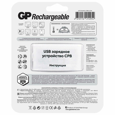Главная выгода и преимущество аккумуляторов GP — перезаряжаемость до 500 раз, позволяющая экономить в сравнении с одноразовыми элементами питания.