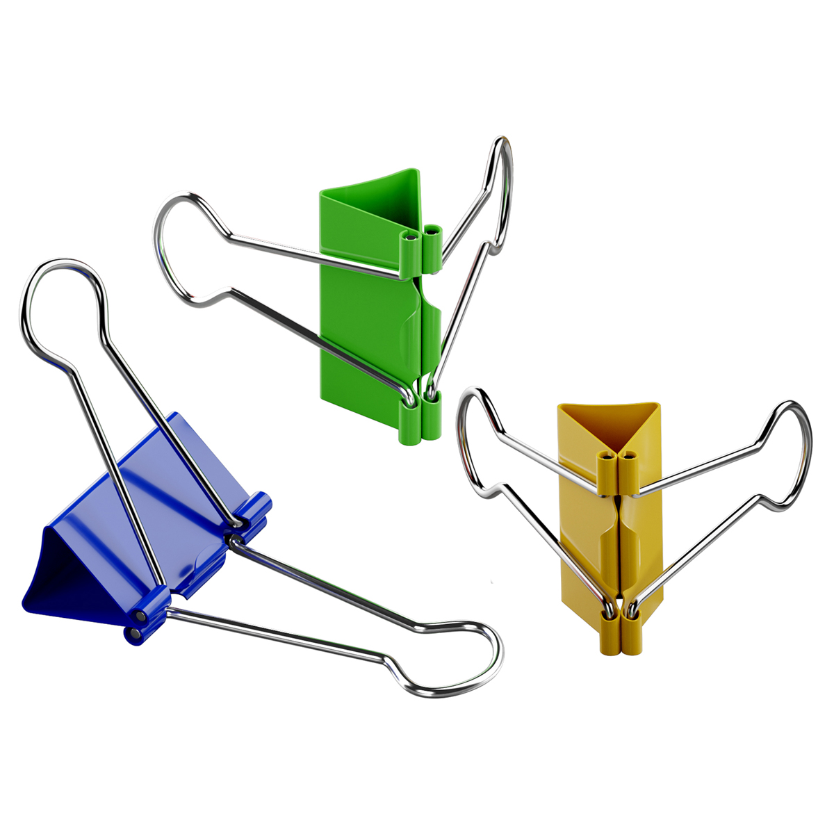 Зажимы выполнены в ярких цветах. Надежно скрепляют и не деформируют бумагу. Скрепляют до 60 листов, не оставляют на ней следов. Упакованы в картонную коробку по 12 шт. Цвета - ассорти.