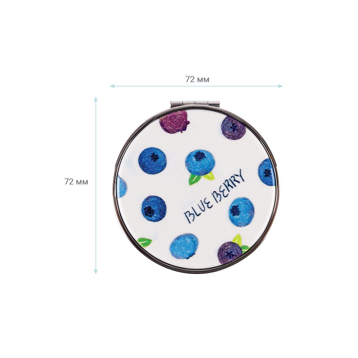 Зеркало карманное складное MESHU Blueberry изготовлено из качественного пластика и стекла. Это стильный, красивый и полезный аксессуар, необходимый любой девушке. Модель размера 72*72 мм состоит из двух зеркал: одно обеспечивает стандартное отражение, второе – с двукратным увеличением. Зеркало очень компактное и лёгкое. Яркое оформление непременно понравится девочкам. Изделие упаковано в пакет с европодвесом.<br/>• Размер: 72*72 мм;<br/>• Увеличение: да.
