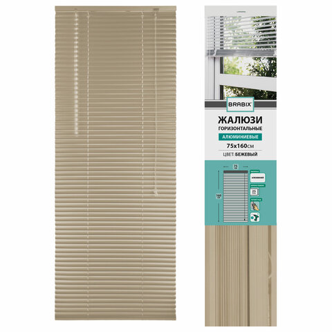 Жалюзи горизонтальные BRABIX 70х160 см, АЛЮМИНИЙ, цвет бежевый, 608639