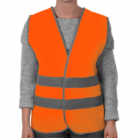 Сочетание оранжевого цвета и светоотражающих полос обеспечивает его заметность как днем, так и в темное время суток. Жилет с центральной застежкой на ленту-липучку надевается поверх другой одежды. Изделие соответствует первому классу защиты, изготовлено из 100% полиэстера плотностью 100 г/м2. Ширина светоотражающей ленты – 50 мм. Изделие полностью соответствует ГОСТ 12.4.281-2014 (Система стандартов безопасности труда. Одежда специальная повышенной видимости).