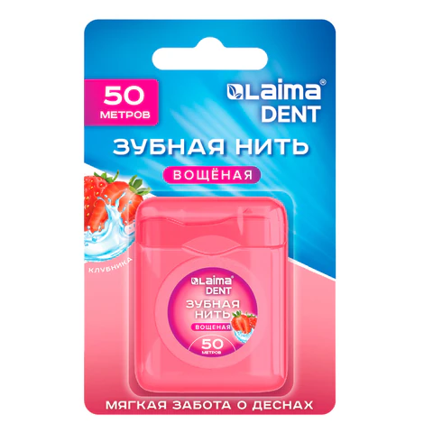 Зубная нить вощеная 100м (2шт х 50м), мягкая забота о деснах, ВКУС КЛУБНИКИ, LAIMA DENT, 609416